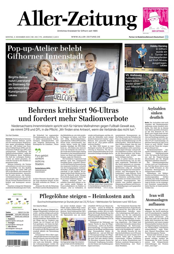 Die Aller-Zeitung berichtet von Montag bis Sonntag über alles, was im Landkreis Gifhorn und darüber hinaus wichtig ist. Nachrichten aus Gifhorn, Brome, Meinersen, Isenbüttel, Papenteich, Wesendorf, Sassenburg und dem Boldecker Land sorgen dafür, dass Sie über alle wichtigen Themen auf dem Laufenden bleiben. Besonders praktisch: Das ePaper der Tageszeitung ist online lesbar und als PDF downloadbar.