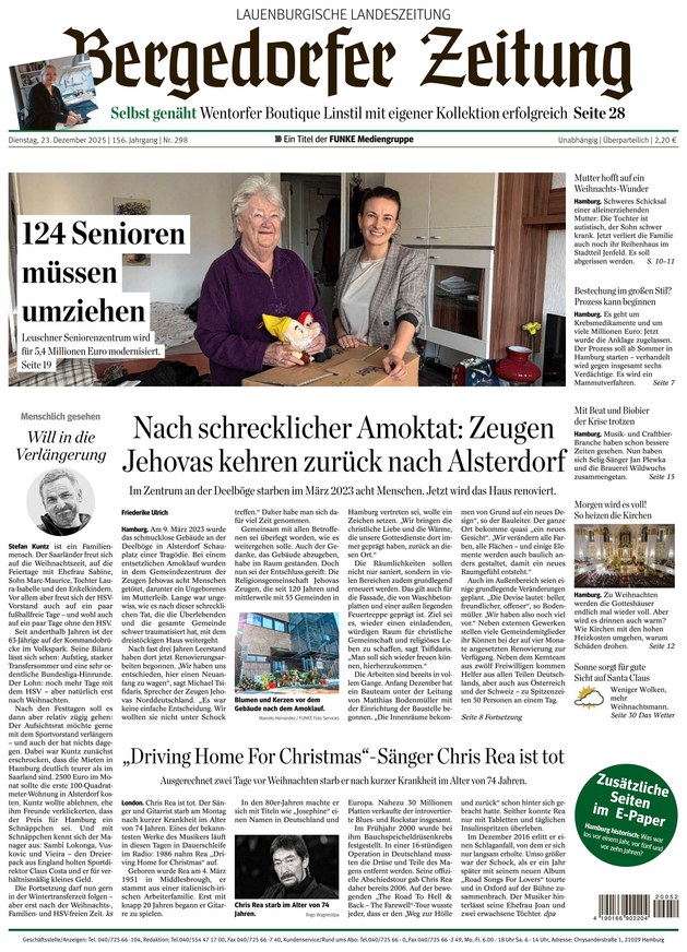 Die BERGEDORFER ZEITUNG liefert lokale Nachrichten für den Kreis Lauenburg/Bergedorf. Das ePaper der Tageszeitung hält Sie zudem über regionale, nationale und internationale News auf dem Laufenden. Weiterlesen...