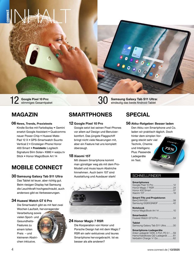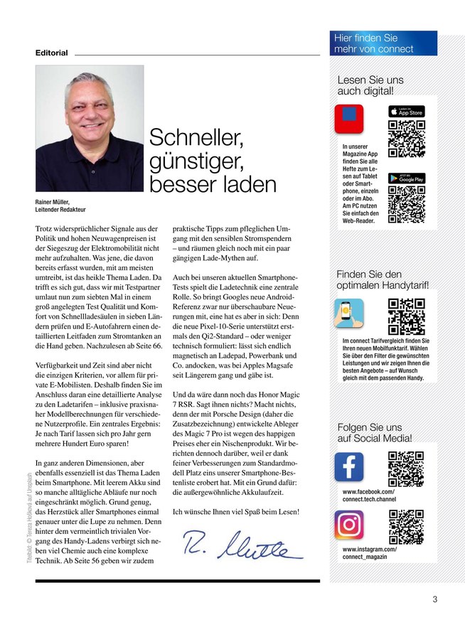 News, Tests und Tipps rund um Handys, Smartphones, Navigationsgeräte, Tablets und Co. gibt es im monatlich erscheinenden Technik-Magazin connect. Über alle Entwicklungen und Trends informiert die Zeitschrift auch als ePaper - so entscheiden Sie selbst, ob Sie lieber zuhause am Computer oder unterwegs auf dem Smartphone Ihre digitalen Zeitschriften lesen wollen. Erhältlich ist connect als Einzelausgabe oder im Abonnement, über das Archiv können Sie zudem auf ältere Ausgaben zugreifen.