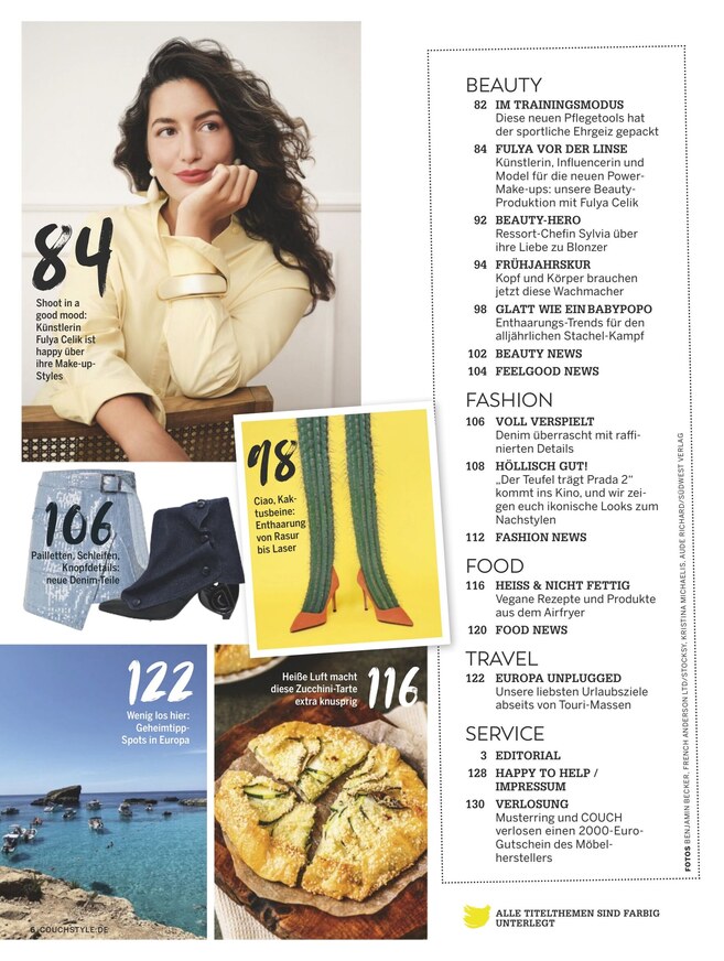 • Beauty - im Beauty-Bereich zeigt COUCH die neuesten Highlights der Pflegeprodukte und gibt Wellness-Tipps.