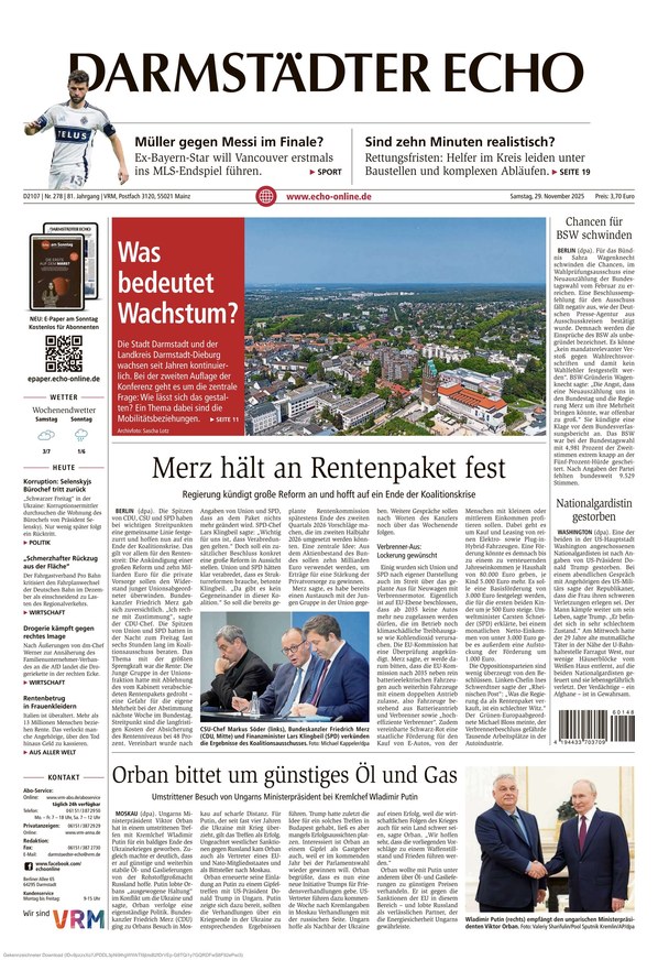 Darüber hinaus überzeugt das Darmstädter Echo durch hohe journalistische Qualität und vielfältige Meinungen. Mit investigativem Journalismus und kritischer Berichterstattung leistet es einen wichtigen Beitrag zur Meinungsbildung und Transparenz. Entdecken Sie die Zeitung, die Ihre Region versteht und informiert!