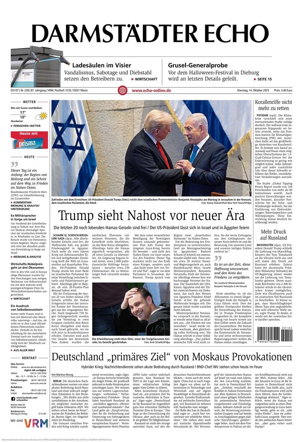 Das Darmstädter Echo ist Ihre traditionsreiche Informationsquelle, die mit umfassender Berichterstattung aus der Universitätsstadt Darmstadt und Umgebung alle Facetten von aktuellen lokalen Nachrichten über politische Entwicklungen und Wirtschaftsthemen bis hin zu Kultur, Sport und gesellschaftlichen Ereignissen abdeckt.