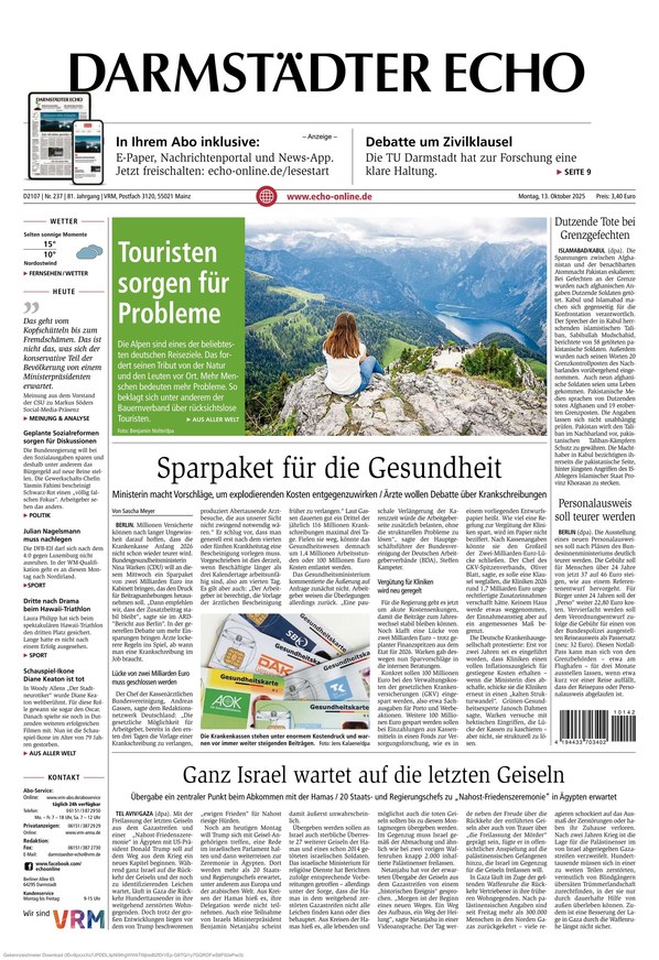 Darüber hinaus überzeugt das Darmstädter Echo durch hohe journalistische Qualität und vielfältige Meinungen. Mit investigativem Journalismus und kritischer Berichterstattung leistet es einen wichtigen Beitrag zur Meinungsbildung und Transparenz. Entdecken Sie die Zeitung, die Ihre Region versteht und informiert!
