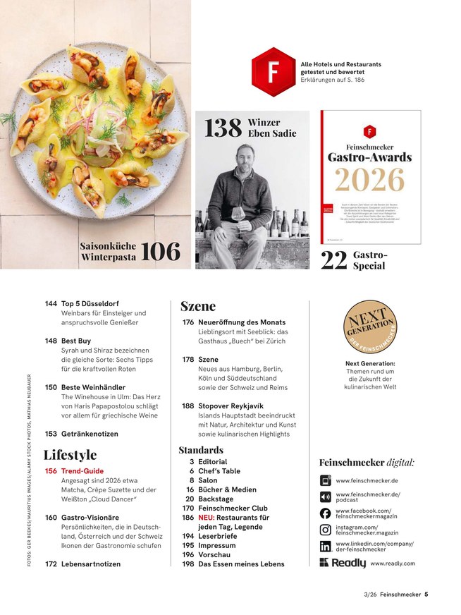Sachkundig und amüsant informiert Der Feinschmecker über attraktive Reiseziele und aktuelle Trends in Gastronomie, Hotellerie und Weinbau. Das ePaper dient Gourmets als unentbehrlicher Wegbegleiter. Weiterlesen...