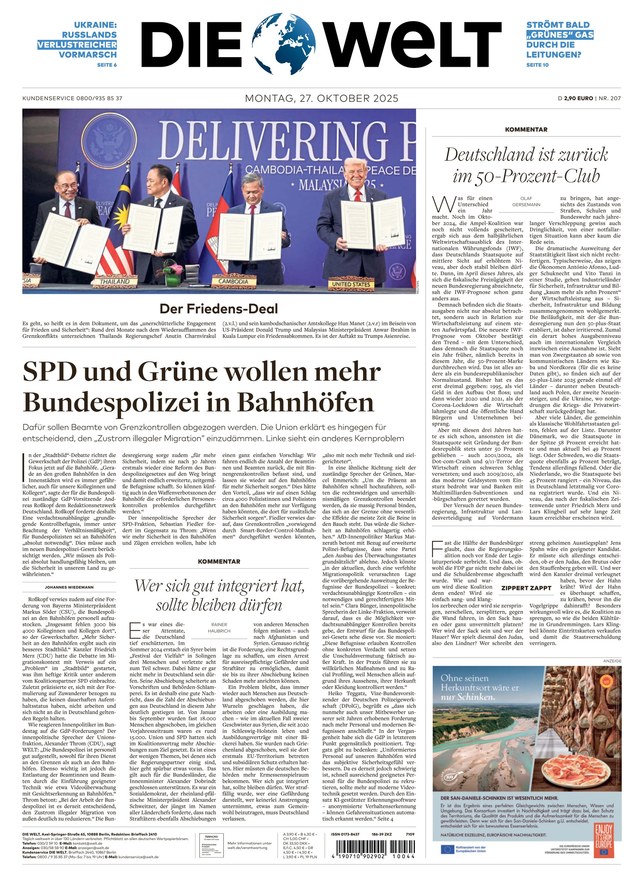 DIE WELT erscheint von Mo-Fr. DIE WELT berichtet über die neuesten Nachrichten aus dem In- und Ausland, Aktuelles aus Politik, Wirtschaft, Sport und Kultur. Das ePaper der Tageszeitung liefert alle relevanten News. Weiterlesen...