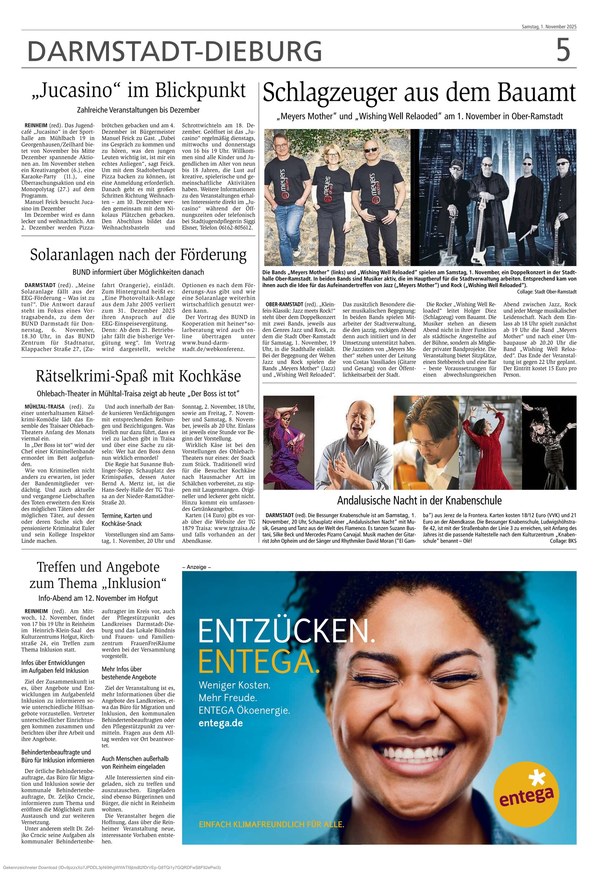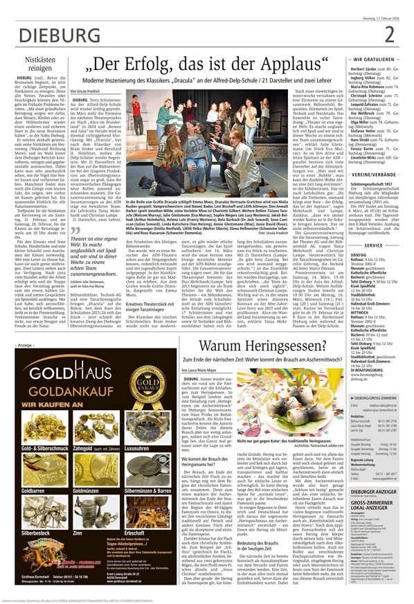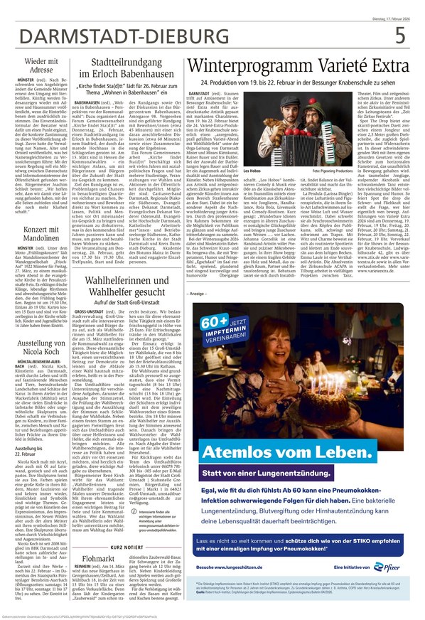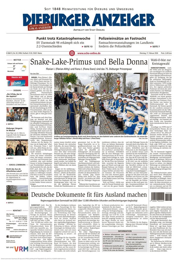 Der Dieburger Anzeiger ist Ihre traditionsreiche Informationsquelle, die mit umfassender Berichterstattung aus Dieburg und Umgebung alle Facetten von aktuellen lokalen Nachrichten über politische Entwicklungen und Wirtschaftsthemen bis hin zu Kultur, Sport und gesellschaftlichen Ereignissen abdeckt.