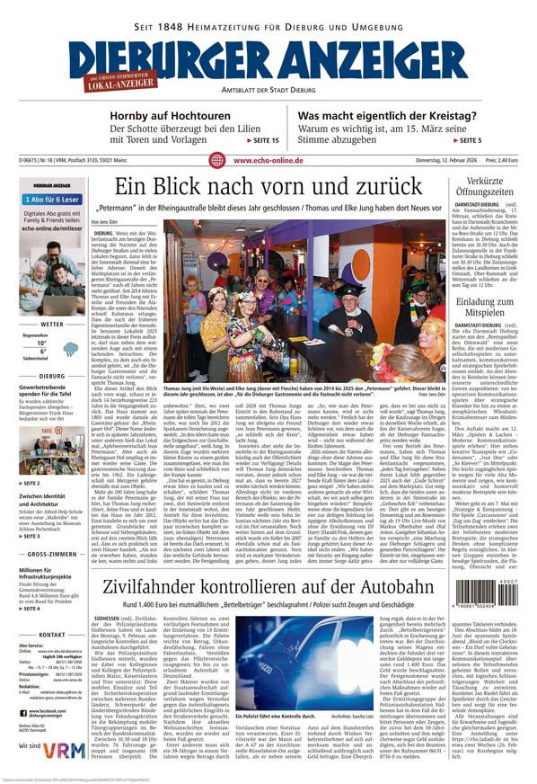 Der Dieburger Anzeiger ist Ihre traditionsreiche Informationsquelle, die mit umfassender Berichterstattung aus Dieburg und Umgebung alle Facetten von aktuellen lokalen Nachrichten über politische Entwicklungen und Wirtschaftsthemen bis hin zu Kultur, Sport und gesellschaftlichen Ereignissen abdeckt.
