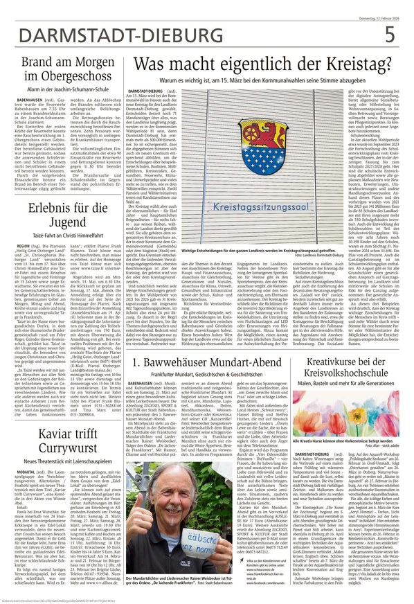 Darüber hinaus überzeugt der Dieburger Anzeiger durch hohe journalistische Qualität und vielfältige Meinungen. Mit investigativem Journalismus und kritischer Berichterstattung leistet er einen wichtigen Beitrag zur Meinungsbildung und Transparenz. Entdecken Sie die Zeitung, die Ihre Region versteht und informiert!