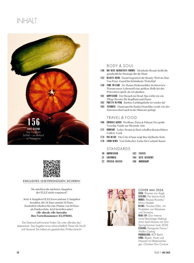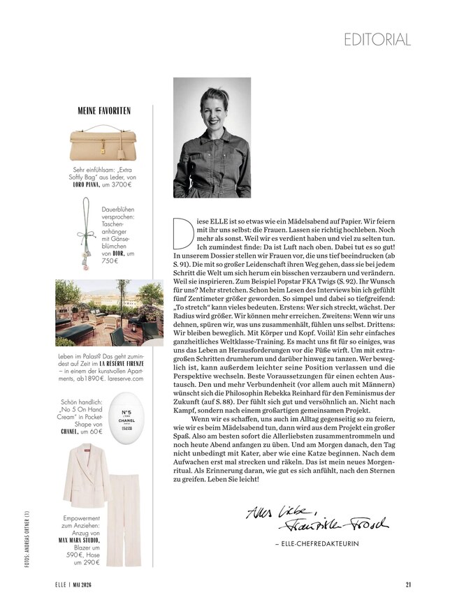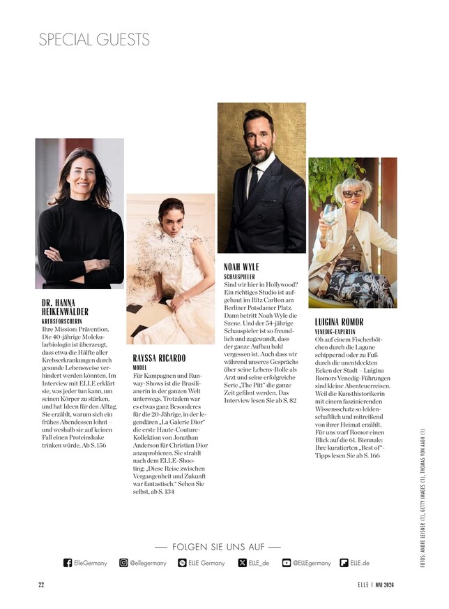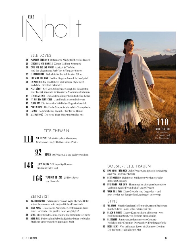 Das ePaper von ELLE bietet modeinteressierten Frauen die heißesten Trends vom Laufsteg, Lifestyle-Themen, Kultur, Stars und vieles mehr. Weiterlesen...