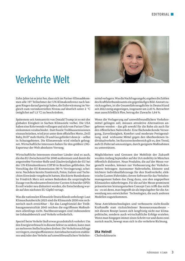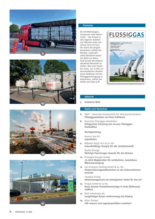 Die etablierte Fachzeitschrift ist die einzige Publikation für dieses Energiesegment. Flüssiggas kann zu Heizzwecken, zur Warmwasserbereitung, bei der Bautrocknung oder als Treibgas für Kraftfahrzeuge genutzt werden. Installationsbetriebe, Industrie und Behörden erhalten detaillierte Informationen über den Bezug sowie die vielfältigen Einsatzmöglichkeiten und Vorteile dieses flexiblen, effizienten Energieträgers.