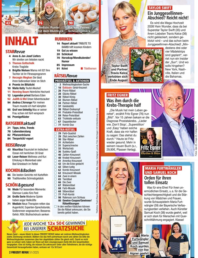 Seit 1970 ist Freizeit Revue ein Synonym für Unterhaltung und praktische Lebenshilfe im Zeitschriftenformat. Freizeit Revue unterhält jede Woche ihre Leserinnen und Leser: Mit aktuellen Reportagen über Prominente und Menschen von nebenan, mit Tipps, Informationen und Trends rund um Gesundheit, Reise, Rätsel, Kosmetik, Mode und Finanzen. Jetzt reinlesen!