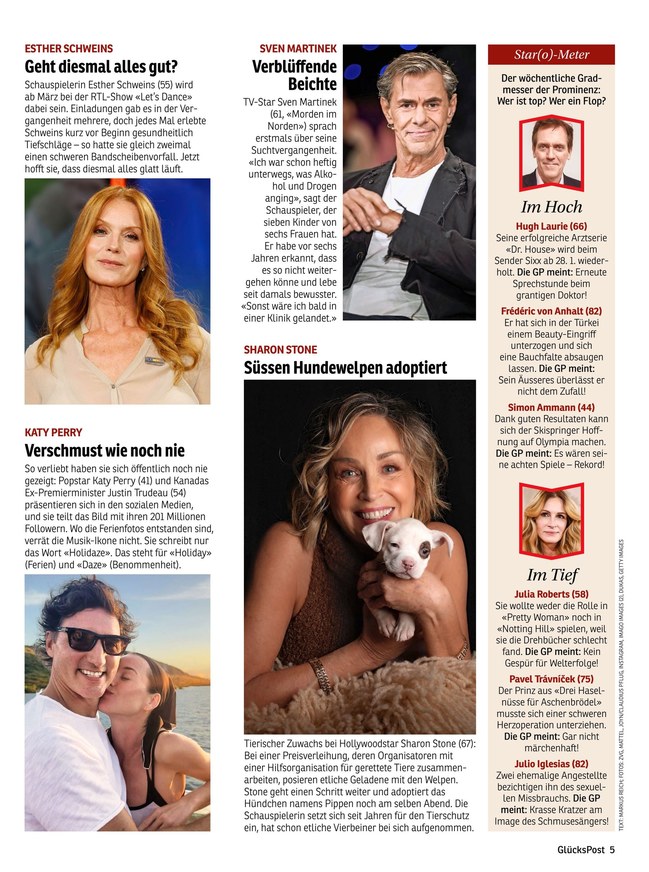 Ob Hochadel oder Hollywood, die GlücksPost berichtet über die interessantesten Promis aus aller Welt. Außerdem bietet das ePaper Infos rund um Gesundheit, Reise, Tiere und ein schönes Zuhause. Weiterlesen...