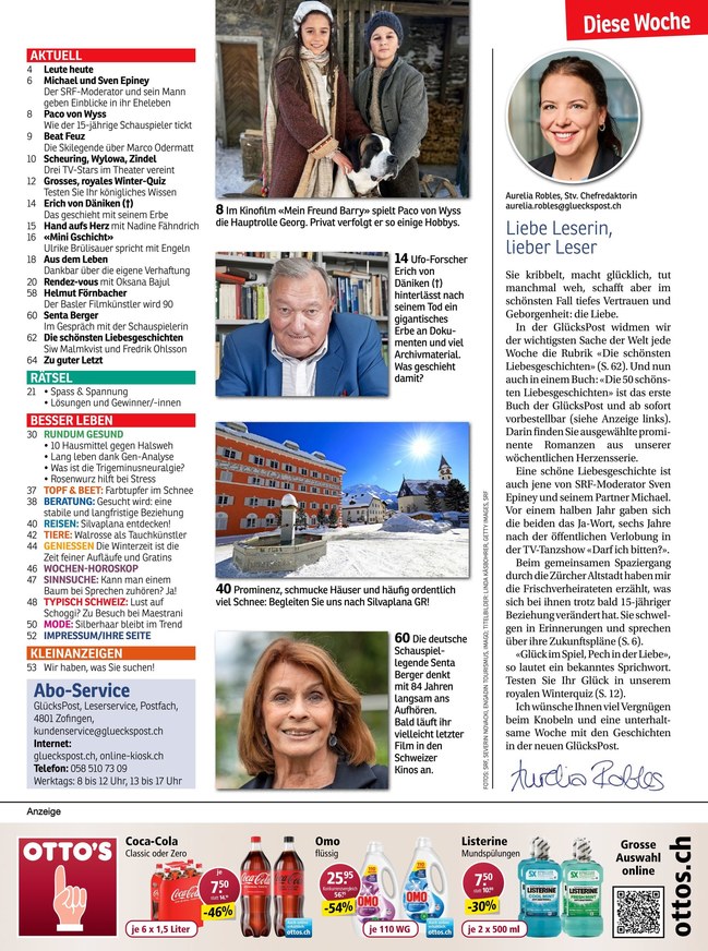 Außerdem in der GlücksPost: Rätsel, Verlosungen, Wochenhoroskop und Kleinanzeigen.