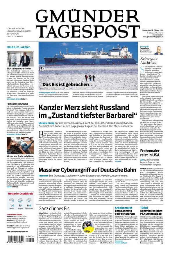 Die Gmünder Tagespost ist die lokale Tageszeitung im Ostalbkreis. Das ePaper informiert von Montag bis Samstag über alle wichtigen Themen in der Region und darüber hinaus. Weiterlesen...