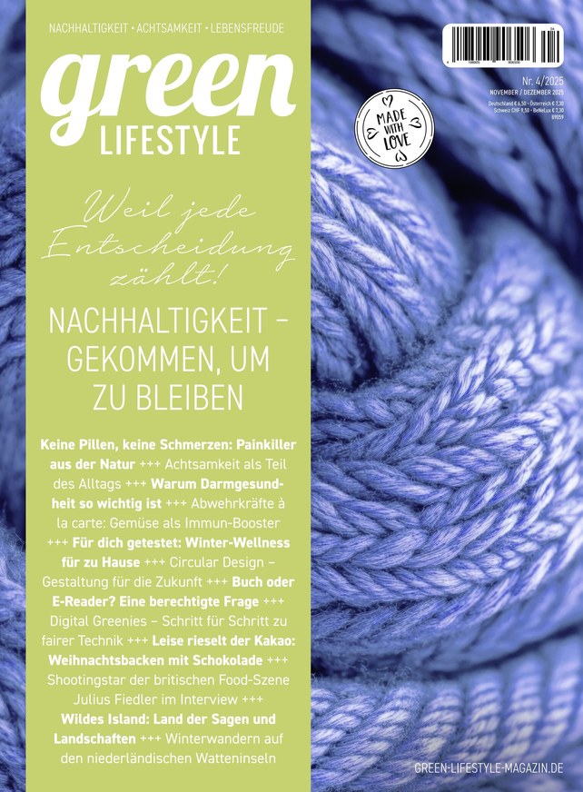 greenLIFESTYLE ist das Magazin für einen nachhaltigen Lebensstil. Und dieser beschränkt sich nicht nur darauf "grüne" Produkte zu kaufen, sondern beinhaltet auch "grün" zu denken, sich ganz bewusst Zeit zu nehmen und achtsam zu leben. Faire Mode, natürliche Produkte, Rezepte für selbstgemachte Kosmetik, Infos zu Bio- und Öko-Siegeln oder Tipps für den Frühjahrsputz ohne Chemie - das greenLIFESTYLE-ePaper liefert in vier Ausgaben pro Jahr Inspiration für alle Lebensbereiche.