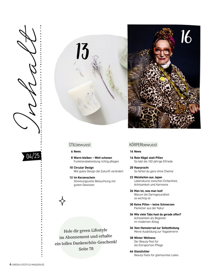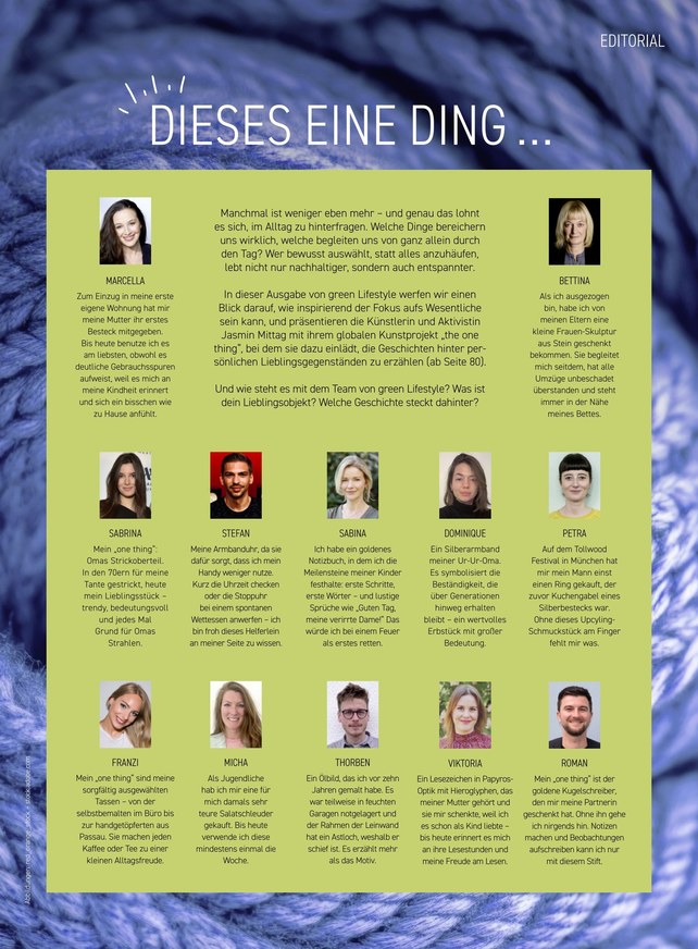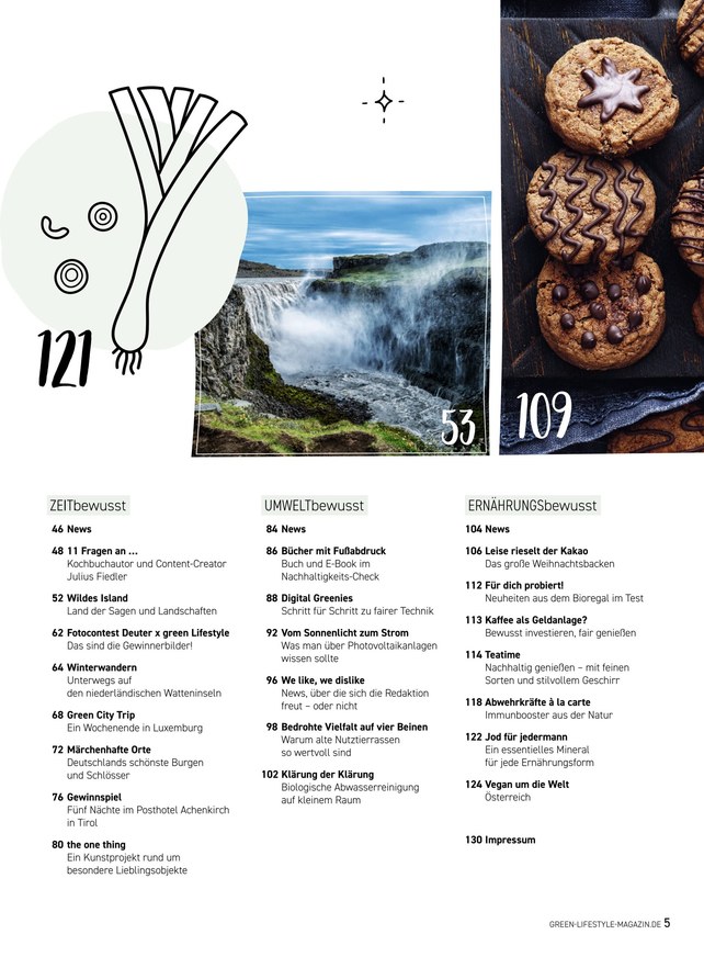 Im ePaper von greeenLIFESTYLE finden Sie folgende Rubriken: