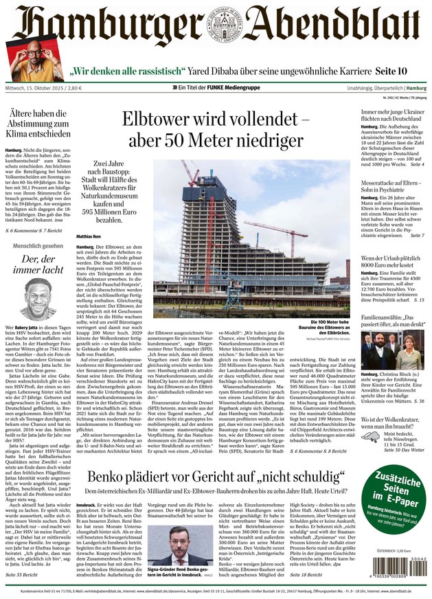 Mit dem ePaper des Hamburger Abendblattes fällt das Zeitungslesen leicht und macht darüber hinaus großen Spaß. Die Qualität der digitalen Tageszeitung unterscheidet sich nicht von der der gedruckten Version und Sie können am PC, Tablet oder Smartphone auf das Abendblatt-ePaper zugreifen. Sie können das ePaper des Hamburger Abendblatts dauerhaft abonnieren oder als Einzelausgaben lesen.