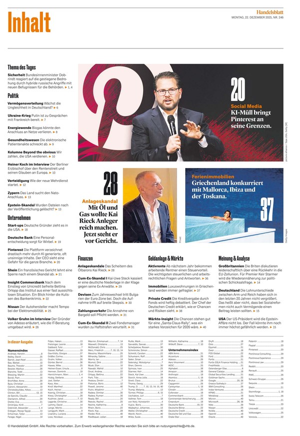 Montag bis Freitag sind jeweils Handelsblatt-Tage. Wenn Sie es gewohnt sind, sich unter der Woche über die wichtigen Themen aus der Finanzwelt zu informieren und gerne die aktuellsten Börsen-News lesen möchten, dann ist das ePaper des Handelsblattes genau richtig für Sie. Die digitale Tageszeitung der Wirtschafts- und Finanzzeitung ist identisch mit der gedruckten Ausgabe und kann von Ihnen täglich und unabhängig von der Uhrzeit von jedem beliebigen Ort aus per Computer, Handy oder Tablet abgerufen werden.