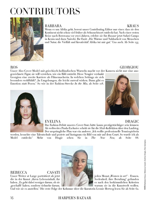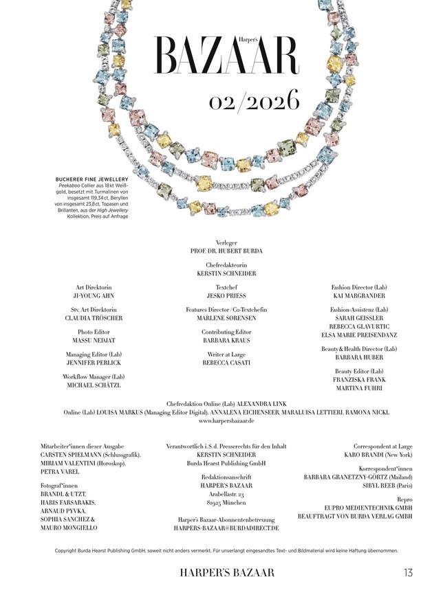 Jede Ausgabe des ePapers von Harper’s BAZAAR enthält Beiträge in folgenden Rubriken: