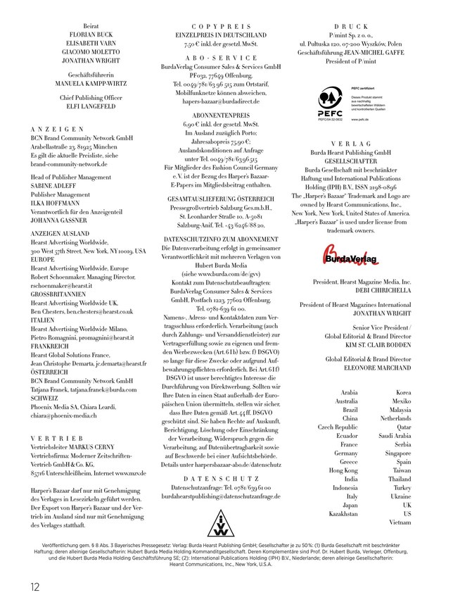 In Deutschland wird Harper's BAZAAR seit 2013 von der Burda Hearst Publishing GmbH herausgegeben.
