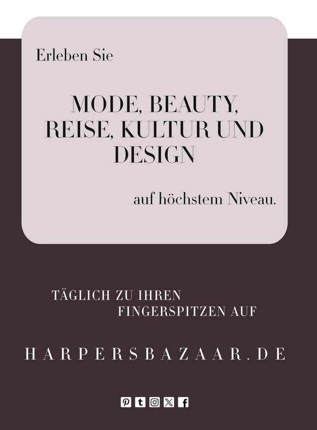Harper’s BAZAAR erscheint monatlich und versorgt Sie in jeder Ausgabe mit dem Wichtigsten aus den Bereichen Fashion, Beauty und Lifestyle. Lesen Sie das ePaper auf dem Smartphone, Tablet oder Computer - unterwegs oder zuhause. Besonders praktisch: Sie müssen nicht einmal online sein, um digital zu lesen, denn das ePaper von Harper’s BAZAAR können Sie als PDF herunterladen und zum späteren Lesen abspeichern.