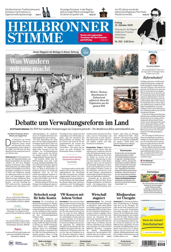 Die digitale Ausgabe Ihrer Heilbronner Stimme versorgt Sie mit Nachrichten, Hintergrundgeschichten und Reportagen aus den Regionen Heilbronn, Hohenlohe und Kraichgau sowie dem Rest der Welt. Lesen Sie die führende Tageszeitung des Unterlands als E-Paper! Weiterlesen...