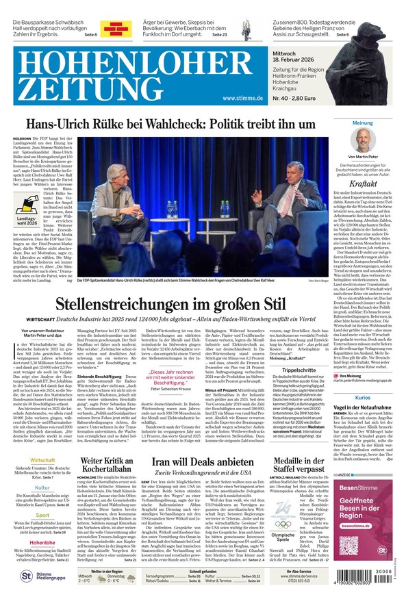 Vom 18.02.2026 Jahresabonnement bei United Kiosk Die Hohenloher Zeitung hat ab sofort keine Regionalausgaben