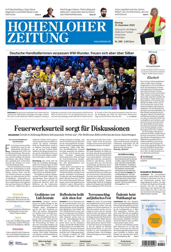 Vom 15.12.2025 Jahresabonnement bei United Kiosk Die Hohenloher Zeitung hat ab sofort keine Regionalausgaben