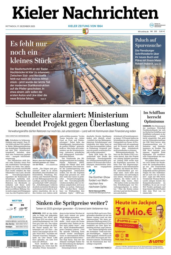 Die Kieler Nachrichten berichten über alles, was in Kiel und Schleswig-Holstein wichtig ist. Das ePaper der Tageszeitung versorgt Sie täglich mit den wichtigsten News und Infos aus der Region. Weiterlesen...