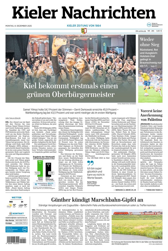 Die Kieler Nachrichten berichten über alles, was in Kiel und Schleswig-Holstein wichtig ist. Das ePaper der Tageszeitung versorgt Sie täglich mit den wichtigsten News und Infos aus der Region. Weiterlesen...
