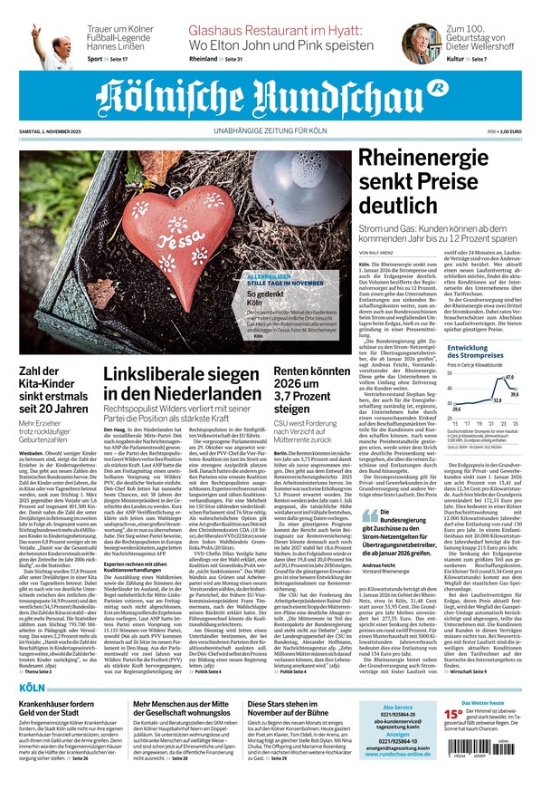 Die Kölnische Rundschau berichtet über alles, was im Raum Köln/Bonn wichtig ist. Bleiben Sie mit dem ePaper der lokalen Tageszeitung über alle wichtigen Themen und Nachrichten aus der Region informiert. Weiterlesen...