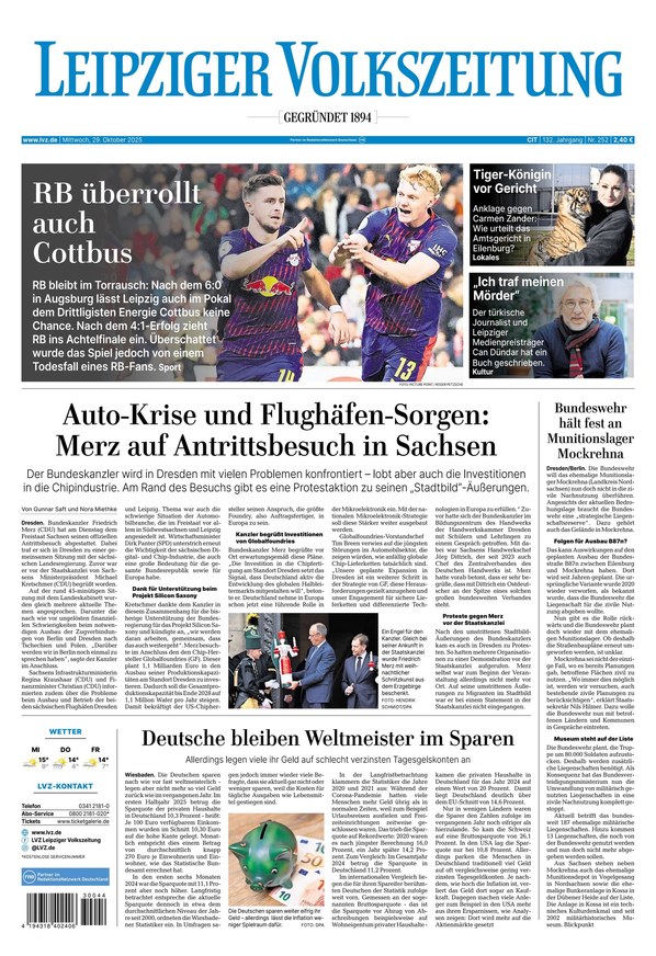 Sie interessieren sich für alles, was in Leipzig und um Leipzig herum passiert? Zusätzlich wollen Sie alle relevanten Nachrichten aus Deutschland und der Welt erfahren? Dann ist die Leipziger Volkszeitung (LVZ) die ideale Tageszeitung für Sie. Von Montag bis Sonntag erfahren Sie in der LVZ, die auch als ePaper erhältlich ist, alle wichtigen News.