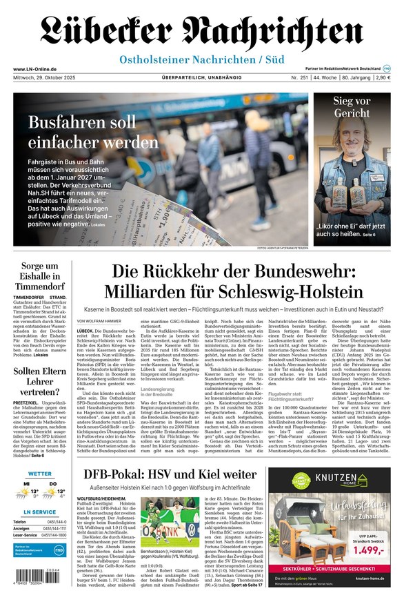 Vom 29.10.2025 Die regionale Tageszeitung der Lübecker Nachrichten berichtet über aktuelle Neuigkeiten und Geschehnisse aus dem südöstlichen Schleswig-Holstein und dem westlichen Mecklenburg-Vorpommern.