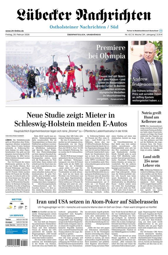 Vom 20.02.2026 Die regionale Tageszeitung der Lübecker Nachrichten berichtet über aktuelle Neuigkeiten und Geschehnisse aus dem südöstlichen Schleswig-Holstein und dem westlichen Mecklenburg-Vorpommern.