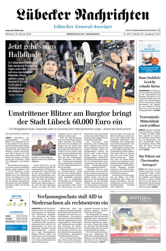 Im iKiosk finden Sie die Lübecker Nachrichten entweder als ePaper oder als PDF zum Download. So können Sie Ihre Tageszeitung stets pünktlich und aktuell in digitaler Form lesen, zum Beispiel auf dem Smartphone oder Tablet. Gleichzeitig können Sie von praktischen Vorteilen profitieren, etwa einer Suchfunktion oder einem Zoom. Oder sind Sie auf der Suche nach einer älteren Ausgabe der Lübecker Nachrichten? Dann werfen Sie einen Blick in unser Archiv, in dem Sie zahlreiche Ausgaben der vorigen Tage und Wochen finden können.