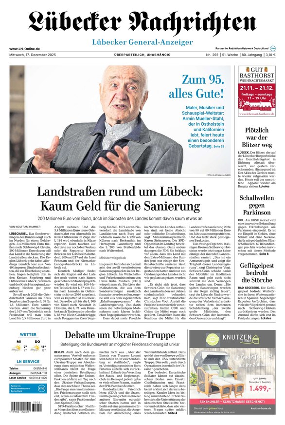 Die regionale Tageszeitung der Lübecker Nachrichten berichtet über aktuelle Neuigkeiten und Geschehnisse aus dem südöstlichen Schleswig-Holstein und dem westlichen Mecklenburg-Vorpommern. Weiterlesen...