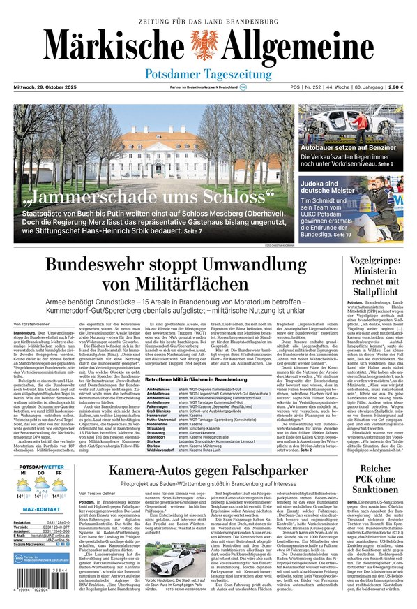 Die Märkische Allgemeine ist die Tageszeitung für Potsdam und Umgebung. Das ePaper der MAZ bietet aktuelle News aus den Bereichen Politik, Wirtschaft, Kultur und Sport. Weiterlesen...