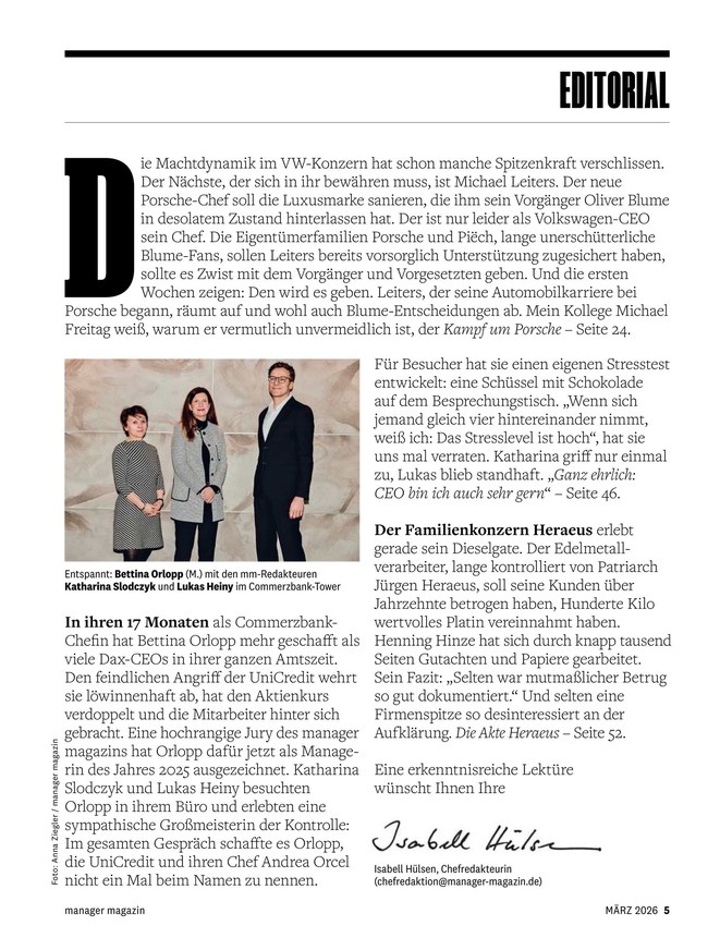 Lesen Sie im manager magazin Aktuelles aus Wirtschaft, Börse und Unternehmen. Ebenfalls im ePaper der Zeitschrift enthalten: exklusive Berichte und Interviews mit Managern bzw. Vorstandsvorsitzenden. Weiterlesen...
