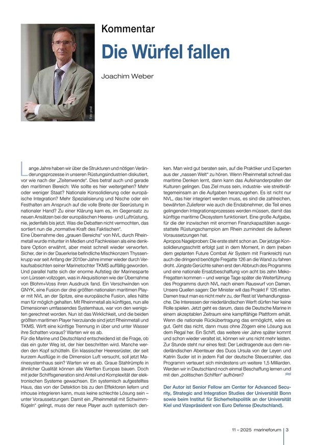 Das ePaper von Marine Forum wird vom Deutschen Maritimen Institut e.V. in der Mittler Report Verlag GmbH herausgegeben und richtet sich an alle, die sich beruflich oder privat intensiv mit Maritimen Belangen beschäftigen.