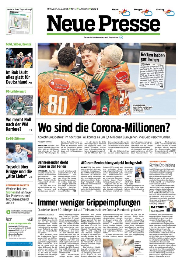 Sie möchten brandaktuelle News aus Hannover und der Region lesen? Dann greifen Sie einfach auf das ePaper hier im iKiosk zu oder laden Sie sich die aktuelle Ausgabe als PDF auf Ihr Endgerät herunter. Auch ältere Ausgaben der Neuen Presse können Sie bei uns finden, stöbern Sie dafür einfach in unserem Archiv.