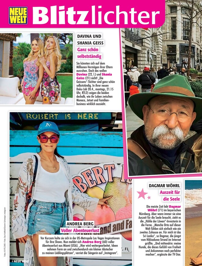 Sehen, was in der Welt passiert – das können Lesende der Zeitschrift Neue Welt alle sieben Tage. Aktueller Klatsch und die größten Geheimnisse aus den Könighäusern ganz Europas, aber auch die neuen Sünden der Stars, werden hier zusammengebracht. Gespickt mit umfangreichen Interviews und spannenden Reportagen können Leserinnen und Leser neue Trends entdecken und hinter die Kulissen schauen. Neben den besten Tipps von der Redaktion für Garten und Balkon werden auch weitere Tricks zum Thema Haushalt und Leben gegeben.