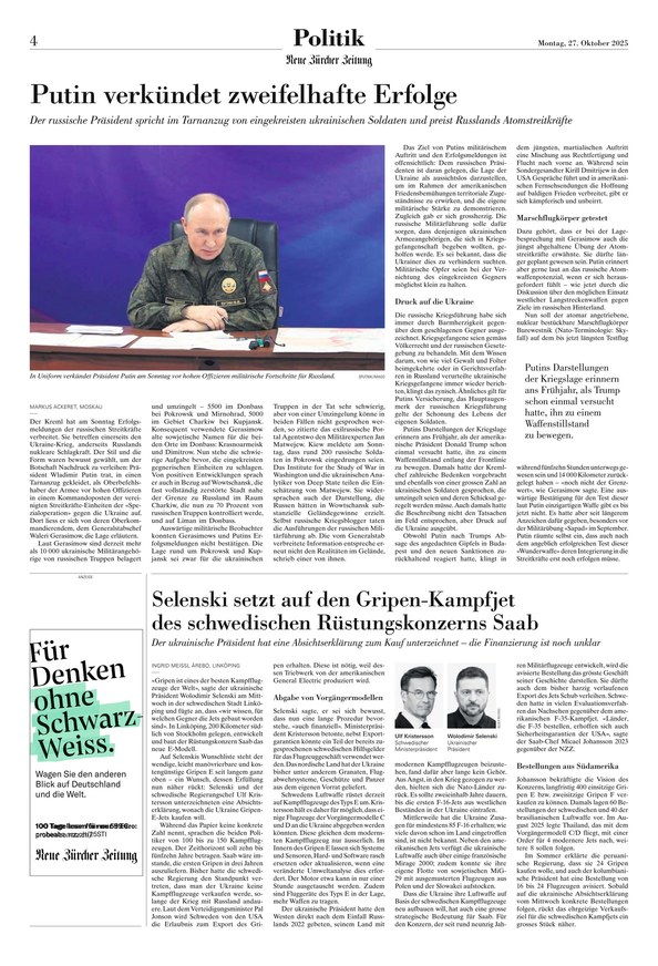 Die Neue Zürcher Zeitung International steht seit 1780 für eine fundierte, präzise und ausführliche Berichterstattung über das internationale, nationale und regionale Geschehen. Weiterlesen...