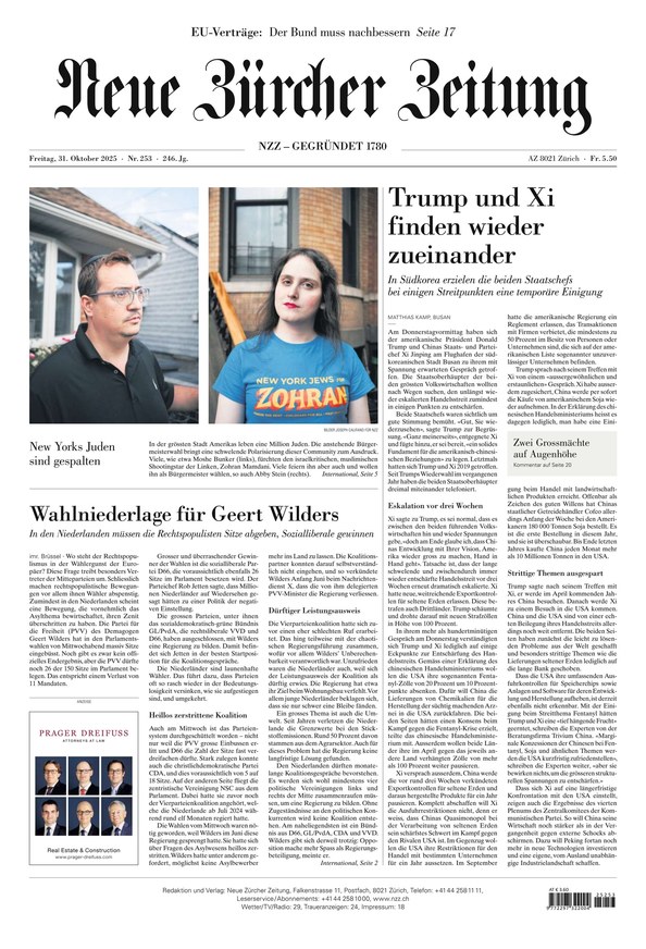 Seit 1780 ist die «Neue Zürcher Zeitung» eine Institution, die durch sorgfältig recherchierten und klar analysierenden Journalismus Vertrauen und Respekt geniesst. Mit zuverlässiger, facettenreicher Berichterstattung und liberalen, unabhängigen Perspektiven hat sie sich für anspruchsvolle Leserinnen und Leser weltweit als unverzichtbare Informationsquelle etabliert.