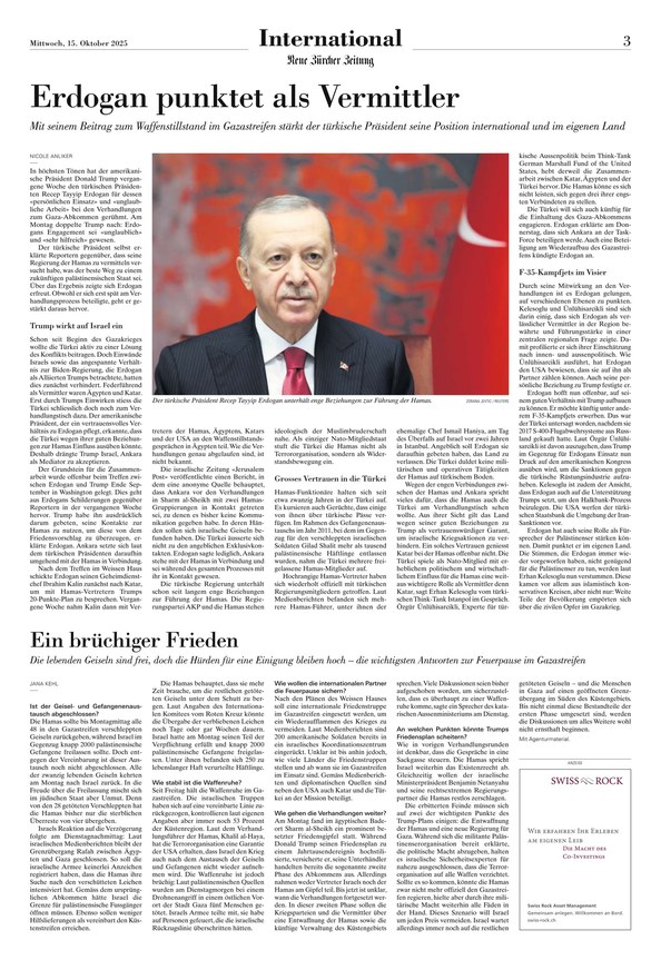Die «Neue Zürcher Zeitung» bietet ein breites Themenspektrum von Politik, Wirtschaft und Gesellschaft über Kultur und Technologie bis hin zu Wissenschaft und Reisen. Redaktionen in Zürich und Berlin, unterstützt von einem weltweiten Korrespondentennetzwerk, informieren aus erster Hand über globale Entwicklungen und liefern neben Nachrichten fundierte Analysen zu allen wichtigen Themen unserer Zeit.