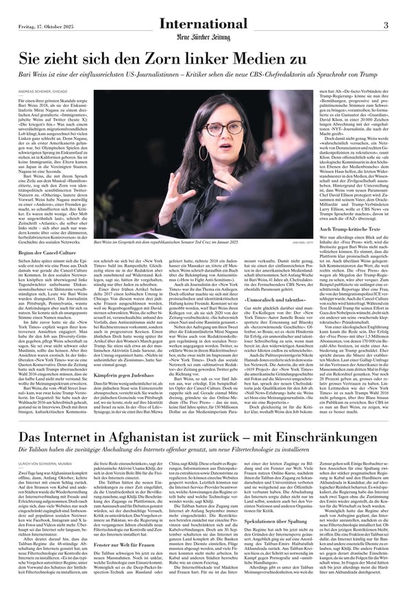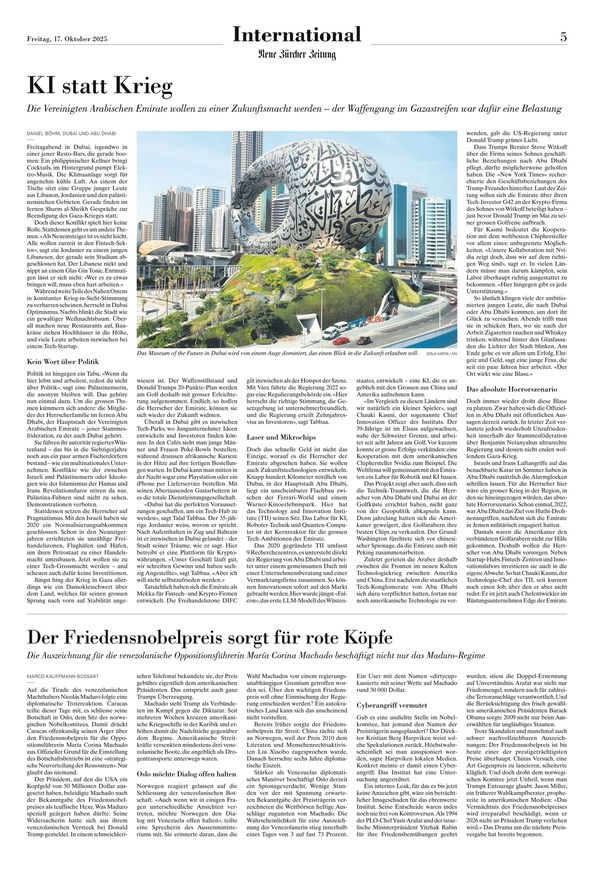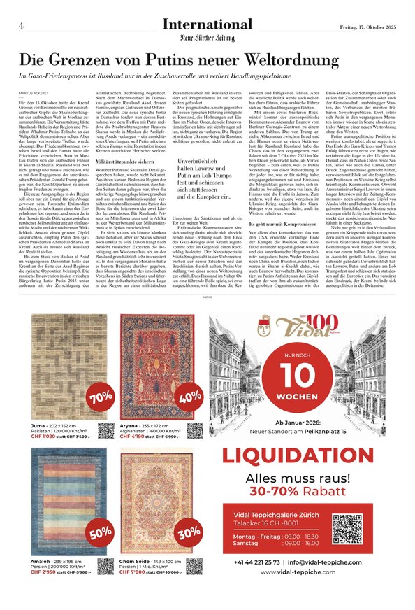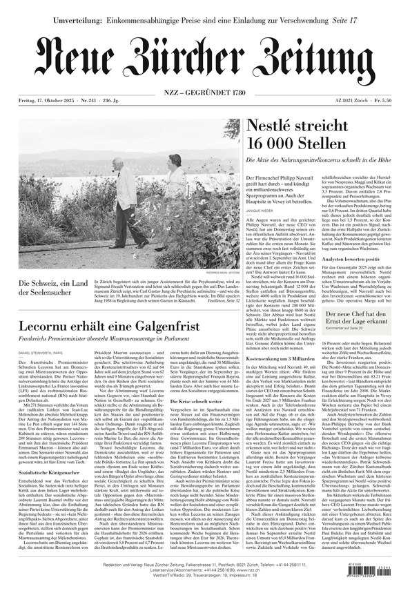 Entdecken Sie die «Neue Zürcher Zeitung»: mit Artikeln aus Politik, Wirtschaft, Wissenschaft und Kultur – immer mit dem Schweizer Blick auf globale Zusammenhänge. Die «Neue Zürcher Zeitung» erscheint montags bis samstags als Printausgabe und als E-Paper. Weiterlesen...
