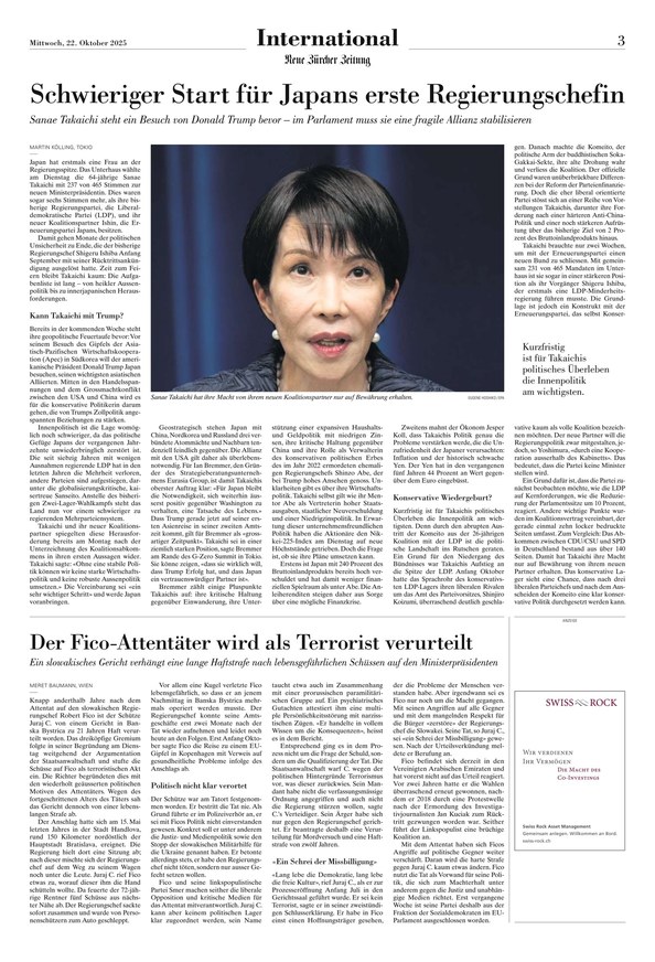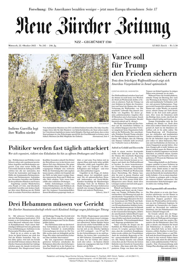 Entdecken Sie die «Neue Zürcher Zeitung»: mit Artikeln aus Politik, Wirtschaft, Wissenschaft und Kultur – immer mit dem Schweizer Blick auf globale Zusammenhänge. Die «Neue Zürcher Zeitung» erscheint montags bis samstags als Printausgabe und als E-Paper. Weiterlesen...