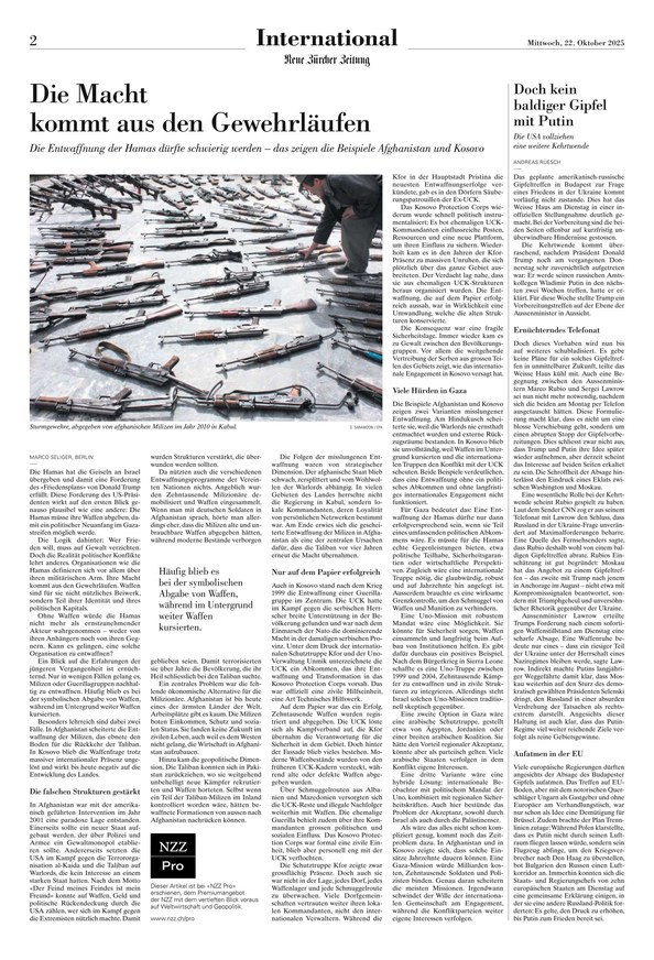 Die «Neue Zürcher Zeitung» bietet ein breites Themenspektrum von Politik, Wirtschaft und Gesellschaft über Kultur und Technologie bis hin zu Wissenschaft und Reisen. Redaktionen in Zürich und Berlin, unterstützt von einem weltweiten Korrespondentennetzwerk, informieren aus erster Hand über globale Entwicklungen und liefern neben Nachrichten fundierte Analysen zu allen wichtigen Themen unserer Zeit.