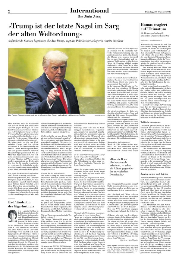 Entdecken Sie die «Neue Zürcher Zeitung»: mit Artikeln aus Politik, Wirtschaft, Wissenschaft und Kultur – immer mit dem Schweizer Blick auf globale Zusammenhänge. Die «Neue Zürcher Zeitung» erscheint montags bis samstags als Printausgabe und als E-Paper. Weiterlesen...