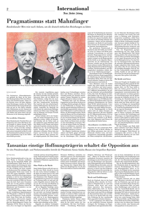 Die «Neue Zürcher Zeitung» bietet ein breites Themenspektrum von Politik, Wirtschaft und Gesellschaft über Kultur und Technologie bis hin zu Wissenschaft und Reisen. Redaktionen in Zürich und Berlin, unterstützt von einem weltweiten Korrespondentennetzwerk, informieren aus erster Hand über globale Entwicklungen und liefern neben Nachrichten fundierte Analysen zu allen wichtigen Themen unserer Zeit.