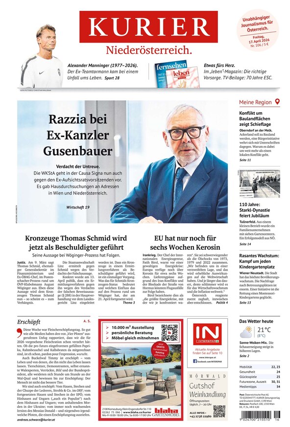 Vom 17.04.2026 Inklusive aller Regionalausgaben und Beilagen.